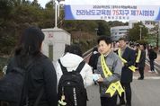 [ 포에버뉴스 오명숙 기자 ] 전라남도교육청이 2026학년도 대학수학능력시험일인 13일 시험장을 찾아 수험생을 응원했다. 김대중 교육감을 비롯한 도교육청 간부들은 이날 오전 75지구 제7시험장인 순천복성고등학교 교문 앞에서 시험을 치르기 위해 들어서는 수험생들을 반갑게 맞이하며 최선을 다해줄 것을 당부했다. 순천복성고 현장에는 김 교육감과 박철완 중등교육과장, 허동균 순천교육지원청교육장, 강종수 순천복성고 교장 등이 “파이팅”을 외치며 수능 대박을 기원했다. 이날 오전 황성환 부교육감도 교육청 간부들과 함께 문태고등학교를 방문해 수험생들을 격려했다. 김대중 교육감은 “모든 수험생 여러분, 정말 수고 많았다. 오늘은 여러분의 날이다”며 “결과에 대한 부담은 내려놓고, 그동안의 노력이 만들어준 자신감을 믿으며 차분히, 끝까지 최선을 다하길 바란다”고 말했다. 한편, 이날 목포·여수·순천·나주·광양·담양·해남 등 7개 시험지구, 총 46개 시험장에서는 1만 4,952명의 수험생이 2026학년도 대입 수능시험을 치른다.