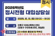 [ 포에버뉴스 김경순 기자 ] 서울 강동구는 오는 12월 13일, 수험생들의 효율적인 정시 지원 전략 수립을 돕기 위한 ‘2026학년도 정시전형 대입상담실’을 운영한다고 13일 밝혔다. 이번 대입상담실은 정시 지원을 앞둔 수험생과 학부모를 대상으로, 2026학년도 대입 정시전형 관련 궁금증을 해소하고 개인별 맞춤형 대학·전공 지원 전략 수립을 지원하기 위해 마련됐다. 상담은 수능성적 통지 직후 주말인 12월 13일에 강동구 미래교육혁신센터에서 진행되며, 총 18개 상담 부스를 운영해 회당 40분간 심층 상담이 이뤄질 예정이다. 이를 통해 수험생과 학부모가 안정적으로 정시전형을 준비할 수 있도록 지원한다. 상담은 한국대학교육협의회 대입상담교사단 소속 교사들이 맡아 전문 대입 상담 프로그램을 활용, 정확하고 체계적인 상담 서비스를 제공한다. 참여 신청은 오는 11월 18일부터 통합교육포털 ‘강동 미래온’ 누리집(홈페이지)을 통해 온라인으로 할 수 있으며, 선착순으로 접수받는다. 이수희 강동구청장은 “시기별‧개인별 맞춤 상담을 통해 수험생과 학부모님들이 체계적으로 정시 지원 전략을 세울 수