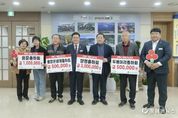 [ 포에버뉴스 박정배 기자 ] 양평군은 지난 9일 양평출하회 300만 원, 용문출하회 100만 원, 두물머리출하회 50만 원, 물맑은쌈채출하회 50만 원 등 총 4개 출하회에서 500만 원의 해피나눔성금을 기탁했다고 밝혔다. 양평군 4개 출하회를 대표해 소감을 전한 전주선 양평출하회 회장은 “지역의 친환경 농업인들이 정성을 모아 마련한 성금이 도움이 필요한 분들에게 의미 있게 쓰이길 바란다”며 “앞으로도 지역사회에 보탬이 되는 활동에 힘쓰겠다”고 말했다. 이에 전진선 양평군수는 “바쁜 농업 현장 속에서도 이웃을 위한 나눔에 동참해 주신 양평군 4개 출하회 여러분께 깊이 감사드린다”며 “농업인들의 따뜻한 마음이 지역사회에 큰 힘이 될 것”이라고 화답했다. 한편, 양평군 4개 출하회는 친환경 농산물을 생산·공급하며 경기도 학교급식 등을 통해 학생들에게 안전한 먹거리를 제공하는 데 힘쓰고 있으며, 이날 기탁된 성금은 경기사회복지공동모금회를 통해 복지 사각지대에 놓인 취약계층을 위한 맞춤형 복지사업 추진에 활용될 예정이다.