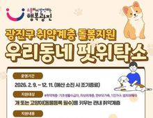 - 1광진구, 취약계층 반려동물 '우리동네 펫위탁소'에서 걱정말고 맡기세요