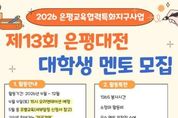 [ 포에버뉴스 김경순 기자 ] 서울 은평구는 은평구진로직업체험지원센터 주관으로 진행되는 진로·진학 지원사업 ‘제13회 은평대전’에 참여할 대학생 멘토를 모집한다고 밝혔다. ‘은평대전’은 ‘은근히 평범한 대학생들의 전공 이야기’의 줄임말로, 대학생 멘토가 자신의 전공 선택 과정과 대학 생활, 진로 경험을 청소년 눈높이에 맞춰 전달하는 프로그램이다. 2014년 시작해 올해로 13년째를 맞았다. 프로그램은 ▲중·고등학교 방문 전공강연 ▲전공 체험 활동 ▲소그룹 전공 상담 ▲전공박람회 등으로 구성돼, 청소년에게는 진로 탐색 기회를, 멘토에게는 교육·소통 역량을 키울 수 있는 경험을 제공한다. 전공 멘토링에 관심 있는 대학생·대학원생(올해 신입생 포함)은 누구나 지원할 수 있으며, 은평구 출신 또는 거주자는 우대 선발한다. 멘토 모집 기간은 다음달 26일까지이며, 신청은 은평구진로직업체험지원센터 누리집 또는 홍보물 속 큐알(QR)코드를 통해 신청서를 내려받아 전자우편으로 제출하면 된다. 이와 함께 대학생 멘토기획단 ‘프리지아’ 8기도 내달 2일까지 모집한다. 프리지아는 은평대전 운영 전반을 지