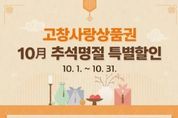 [ 포에버뉴스 사공선 기자 ] 고창군이 추석을 맞아 군민 생활안정과 지역경제 활성화를 위해 ‘고창사랑상품권 특별할인 행사’를 진행한다. 이번 행사는 10월 한 달간 진행된다. 이번 특별할인은 △상품권 구매시 10% 선할인 △고창사랑카드 결제시 10% 캐시백 적립을 통해 최대 20% 혜택을 받을 수 있도록 구성됐다. 특히, 월 구매한도를 100만 원까지 확대해 군민들의 혜택을 더욱 강화했다. 예를 들어, 10만원 상품권 구매 시 10%(1만 원) 선할인을 적용받아 9만원에 구매하고, 이후 고창사랑카드로 결제하면 결제금액의 10%가 캐시백으로 적립돼 실질적으로 최대 20% 혜택을 누릴 수 있다. 다만, 선할인(10%)이 적용된 금액은 캐시백 적립 대상에서 제외된다. 심덕섭 고창군수는 “이번 추석 명절 특별 할인을 통해 군민들께는 생활비 부담을 덜어드리고, 지역 소상공인들에게는 매출 증대 효과가 기대된다”며 “특히, 군에서 지급하는 군민활력지원금과 정부의 민생소비쿠폰이 더해져 군민 모두가 더욱 넉넉한 추석 명절을 보내시길 바란다”고 밝혔다. 한편, 고창사랑상품권은 전통시장과 지