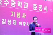 [ 포에버뉴스 김경순 기자 ] 의왕시 백운밸리 지역에 신설된 백운호수중학교의 준공식이 24일 백운호수중학교 체육관에서 개최됐다. 의왕백운프로젝트금융투자(주)(의왕백운PFV(주)) 주최로 열린 이날 준공식에는 김성제 의왕시장, 임태희 경기도 교육감, 김학기 의왕시의회 의장과 도·시의원, 의왕백운피에프브이(주) 김양묵 대표이사, 의왕백운밸리에이엠시(주) 이성훈 대표이사 등 주요 내빈과 지역주민 400여 명이 참석해 자리를 빛냈다. 이번 준공식은 학교 설립을 위해 힘써 온 관계자와 지역 주민들이 한 자리에 모여 그동안의 결실을 함께 나누고 축하하는 뜻깊은 행사로 마련됐다. 의왕시 백운밸리 일대는 주거단지 조성과 함께 인구가 지속적으로 증가하고 있는 지역으로, 그간 중학교 부재에 따른 학생들의 원거리 통학 문제가 꾸준히 제기돼 왔다. 이에, 시는 ‘중학교 신설’이라는 지역 숙원사업 해결을 위해 다각적인 방안을 검토해 왔으며, 2023년 11월 의왕시·군포의왕교육지원청·의왕백운피에프브이(주) 간 3자 업무협약을 체결함으로써 학교 설립이 본격 추진됐다. 협약을 통해 시에서는 백운호수 초등학교 인