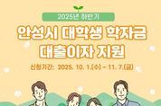 [ 포에버뉴스 김경순 기자 ] 안성시는 오는 10월 1일부터 11월 7일까지 ‘2025년도 하반기 안성시 대학생 학자금 대출이자’ 지원 신청을 받는다. 지원 대상은 공고일(2025. 10. 1.)기준으로 안성시에 주민등록 주소를 두고 재학(휴학 포함)중인 대학(원) 재학생(휴학생)이다. 지원 대상자로 선정되면 대상자가 한국장학재단에서 대출받은 학자금에 대한 2025년 상반기(1월~6월) 발생 이자를 안성시가 지급하게 된다. 지급은 대출 계좌 원리금에서 차감하는 방식으로 진행되며, 지원 내역은 12월 지급이 확정된 시점에 한국장학재단 인터넷 홈페이지에서 확인할 수 있다. 신청 방법은 주소지 읍·면·동 행정복지센터 또는 안성시청(미래교육과)으로 방문하여 접수하면 된다. 안성시 관계자는 “학자금 대출이자 지원 사업을 통해 대학생들의 학업 부담을 완화하고, 학업에 전념할 수 있는 환경을 조성하는데 도움이 되길 바란다”고 전했다.