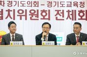 [ 포에버뉴스 김경순 기자 ] 경기도교육청과 경기도의회가 2026년도 본예산 편성 과정에서 총 2,000억 원 규모의 협치 예산을 공동으로 추진하기로 합의하며 교육 협력의 새로운 전기를 열었다. 경기도교육청은 5일 도의회 예담채에서 ‘경기도의회-경기도교육청 제1차 여야정 협치위원회 전체회의’를 개최했다. 이번 회의는 도의회와 교육청이 함께 2026년도 협치 예산 합의문에 서명하며 지속 가능한 교육정책 협력체계를 공고히 하고자 마련됐다. 공동의장 3인은 합의문에 서명하며 교육청과 도의회 간 협치의지를 공식화했다. 합의를 통해 ▲현장 중심 학교운영 ▲교육행정 개선 ▲미래교육 전환 ▲교육환경 개선 ▲맞춤형 교육확대 등 5대 분야 총 2,000억 원 규모 협치 예산을 공동 추진하기로 했다. 임태희 교육감은 인사 말씀을 통해 “여야정 협의가 늘 화두로 떠오르는데 실제로 결실은 많치 않다”며 “이런 점에서 대단히 성숙하고 건강한 도정의 협치 모습을 보이는 현장이라고 생각한다”고 말했다. 이어 “최종적으로 학생과 교육 현장의 학부모, 교직원들을 위해 앞으로 후속 조치를 함께 해주시길
