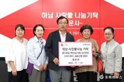 [ 포에버뉴스 김경순 기자 ] 지난 1일 청운사는 하남 사랑愛나눔 성품 및 성금으로 라면 100박스, 백미 10kg 100포, 성금 500만원(1,060만원 상당)을 기탁하고 기탁식을 가졌다. 청운사는 2020년부터 관내 취약계층을 위한 성품 및 성금 기탁을 통해 꾸준한 나눔 문화를 실천하고 있으며, 올해도 하남시에 성품 및 성금을 기탁하며 나눔을 실천했다. 이날 기탁식에는 이현재 하남시장을 비롯하여 청운사 노혜원 사무장, 조순례 신도회장, 김영숙 부회장, 전인숙 총무가 참석하여 자리를 빛냈다. 노혜원 사무장은“지역내 어려운 이웃들에게 조금이나마 도움이 되길 바라고, 풍성한 한가위 명절이 되길 바란다”고 전했다. 이현재 하남시장은“2020년부터 끝임없이 나눔을 실천해 준 청운사에 감사드리며, 어려운 이웃이 따뜻한 추석이 되실 수 있도록 잘 전달하겠다”고 말했다. 이날 기탁한 성금 및 성품은 동 행정복지센터 및 하남시푸드뱅크를 통해 취약계층에게 배부될 예정이다.