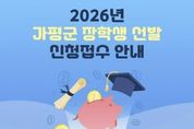 [ 포에버뉴스 김경순 기자 ] 가평군이 지역 학생들의 균등한 교육 기회를 보장하고 우수 인재를 육성하기 위해 2026년도 장학생 선발에 나선다. 군은 올해 중학생 17명, 고등학생 76명, 대학생 107명 등 총 200명을 장학생으로 선발할 계획이다. 장학금은 학생들의 다양한 상황과 역량을 고려해 △으뜸 △특기 △복지 △환경 △보금자리 등 5개 분야로 나눠 선발한다. 신청 자격은 공고일(3월 3일) 기준 가평군에 3년 이상 거주한 군민 또는 그 자녀인 중‧고등학생과 대학생이다. 신청을 희망하는 학생은 공고문을 참고해 5개 분야 가운데 하나를 선택한 뒤 신청서와 관련 구비서류를 준비해 거주지 관할 읍면사무소에 제출하면 된다. 접수 기간은 3월 4일부터 26일 오후 6시까지다. 자세한 사항은 가평군청 홈페이지 고시공고를 통해 확인할 수 있다.