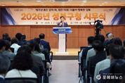 [ 포에버뉴스 김경순 기자 ] 서울 성북구가 2일 성북구청 다목적홀에서 전 공직자가 함께하는 2026년 성북구 직원 시무식을 개최하고, 구민이 일상에서 체감하는 변화를 만들어 가기 위한 한 해의 출발을 알렸다. 이날 시무식에는 성북구청장을 비롯해 국‧과장 및 전 부서 공직자들이 참석해, 지난 한 해를 돌아보고 2026년 구정 운영 방향을 공유했다. 이승로 성북구청장은 인사말에서 민선 8기 후반부를 마무리하는 중요한 시점임을 강조하며, 계획 중심의 행정을 넘어 실질적 성과로 이어지는 구정을 당부했다. 특히 “행정의 궁극적인 목표는 지표를 채우는 것이 아니라, 주민의 삶이 실제로 나아졌는지에 있다”며, 현장 중심 행정과 협력·소통의 조직 문화를 재차 강조했다. 이어 이 구청장은 재난 대응, 복지·돌봄, 생활편의 등 민생 전반에서 사각지대 없는 촘촘한 행정을 펼칠 것을 당부하며 “구민 한 분 한 분이 행정의 변화를 일상에서 느낄 수 있도록 책임을 다하자”고 말했다. 또한 부서 간 칸막이를 낮추고, 공직자 개개인의 전문성을 존중하는 조직 문화를 통해 더 복잡한 행정 과제를 해결해 나가자는 당부도 했다.