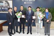 [ 포에버뉴스 이승훈 기자 ] 전주시의회 김성규(효자2·3·4동), 김정명(동서학,서서학,평화1·2동) 의원이 전주시의회 행정사무감사특별위원회가 뽑은 ‘2025 행정사무감사 우수위원’에 선정됐다. 12일 전주시의회는 남관우 의장과 김원주 운영위원장, 이남숙 행정감사특별위원장 등이 참석한 가운데 의장실에서 김성규, 김정명 의원에 대해 행정사무감사 우수위원 감사패 수여식을 가졌다. 행정사무감사특별위원회 소속 의원들은 최근 감사 활동이 우수한 의원 2명을 행정감사 우수위원으로 선정했다. 남관우 의장은 “두 의원이 행정사무감사에서 논리적인 정책 비판과 시정 전반에 대한 문제점 지적, 대안 제시 역할로 전주시 발전에 공이 많았다”고 평가했다. 지난달 18~26일 진행된 행정감사에서 김성규 의원은 실패한 드론축구월드컵, 무리하게 추진된 명품하천조성사업, 김정명 의원은 20억원 세금 날린 전주시 재활용시설 증설 취소, 장애인전용주차구역 과태료 개선 시급 등의 문제를 날카롭게 지적했다. 수상 의원들은 “시민의 뜻을 대변하는 의원으로서 당연히 해야 할 일을 했을 뿐인데 너무나 큰 상을 받게 된 것