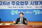 [ 포에버뉴스 오명숙 기자 ] 무안군은 지난 1월 26일부터 실·단·과·소별로 ‘2026년 주요업무 시행계획 보고회’를 열고, 군정 핵심사업과 신규사업을 점검했다고 밝혔다. 이번 보고회는 김산 군수 주재로 4~5개 유관 부서가 함께 참여하는 그룹 보고 방식으로 진행됐다. 이를 통해 부서별 추진 상황을 공유하고, 주요 현안에 대한 협업 방안을 함께 점검했다. 보고회에서는 ▲그린수소 생산기지 구축 ▲마을 태양광발전소 설치 지원 시범사업 ▲신재생에너지 집적화단지 지정 ▲청년 성장 프로젝트 ▲무안군 신청사 건립 ▲교육발전특구 연계 인재양성 프로그램 ▲의료·요양·돌봄 통합지원사업 ▲자활근로사업단 반찬·급식사업 지원 ▲무안군장애인종합복지관 분관 운영 ▲무안문화재단 설립 ▲무안읍 다목적체육관 건립 ▲무안읍·늘어지 파크골프장 조성 ▲우적동 천주교 순례지 관광명소화 사업 ▲물맞이 숲속야영장 조성 ▲신규 국가산업단지 지정 ▲일로읍·오룡지구 공영주차장 조성 ▲도원·내동항 어촌신활력증진사업 ▲일로읍 용산지구 농촌공간정비사업 ▲무안읍 풍수해생활권 정비 ▲청년 농촌보금자리 조성 ▲농업 AX 혁신 콤플렉스 조성 등 군정 전 분야에 걸친 501개 사